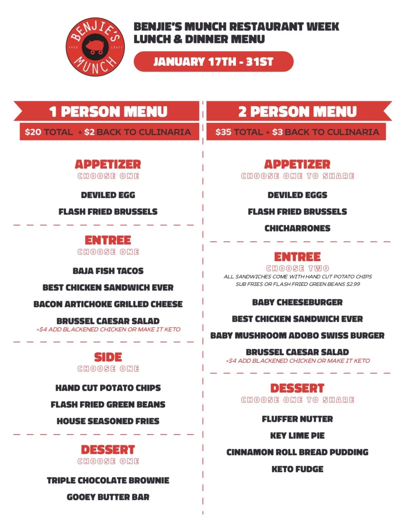 Enjoy our 3-course menu packed with your comfort food favorites! We now have a 1 Person and 2 Person Menu!